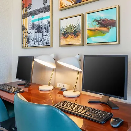 Getaways At Palm Springs Tennis Club features a variety of family-friendly amenities, including an outdoor swimming pool, hot tub, and a fitness center. Rooms are well-equipped with modern conveniences, including kitchenettes. Families can utilize free bike rentals to explore the area, and the resort is conveniently located near local attractions.